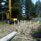 Особенностью данного объекта было то, что нужно было сделать свайный фундамент, на песчаном участке, с уклоном, под баню из бревна диаметром 460мм. Было принято решение использовать комбинированные сваи разной длины, дополнительно были заказаны и смонтированы стальные оголовки для этого бревна. Се работы заняли один день, заказчик остался очень доволен.